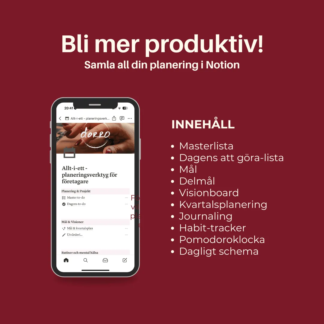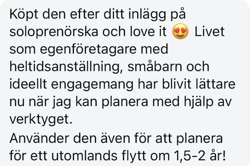 Med mitt planeringsverktyg kommer du som egen företagare få mer tydlighet i exakt vad du behöver göra varje dag och vecka för att nå dina mål.